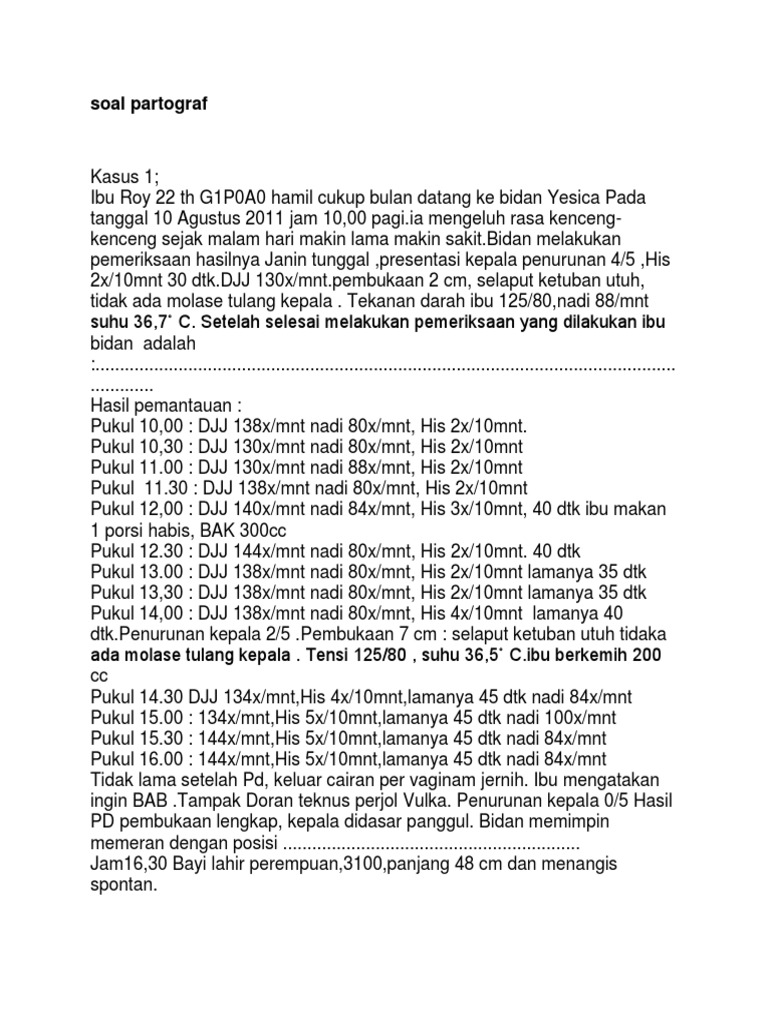 Contoh soal partograf kasus 1; Choose from a wide range of properties which booking.com offers. Jurnal ilmiah research sains vol. Jika ada yang ingin ditanyakan silahkan menghubungi ibu terima kasih. Ibu desy adalah g1p0a0 berusia 22 tahun.